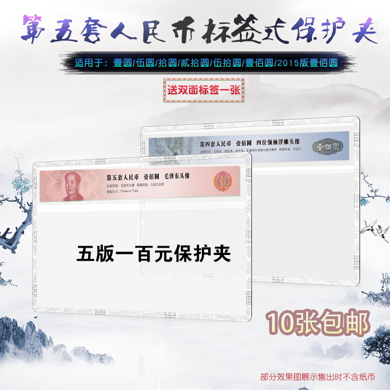 明泰PCCB 5版100元ラベル評価紙幣ハードカバー保護透明ハードクリップ5セット人民元ケース