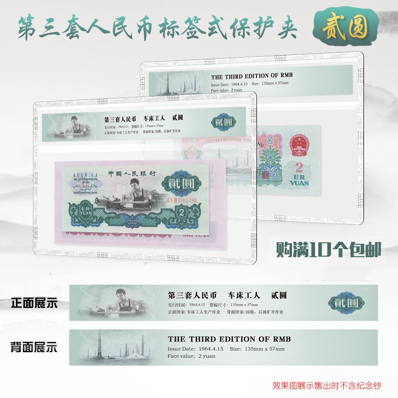 明泰PCCB三版2元ラベル式格付け紙幣ハードカバー保護車工ハードクリップ第3セット人民元ケース