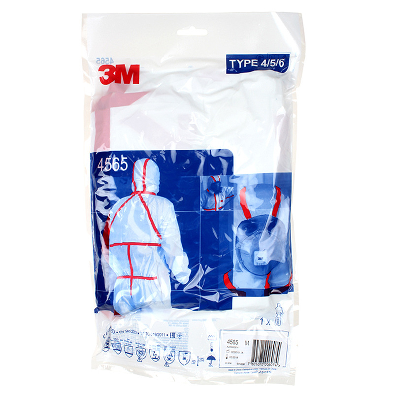 3m 4565白色キャップ付き赤色ゴムストリップ連体防護服防塵化学液体飛散防止防護服