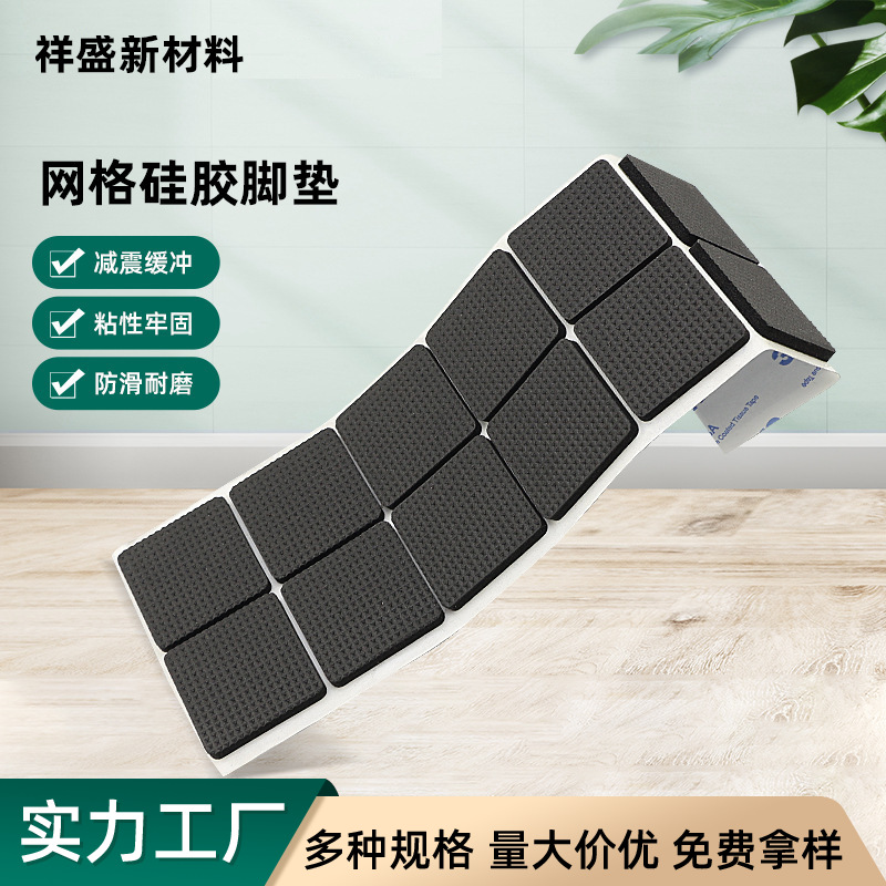 メーカー直販グリッドゴムマット耐摩耗耐圧家具マット滑り止め自己接着黒色グリッドシリコンフットマット