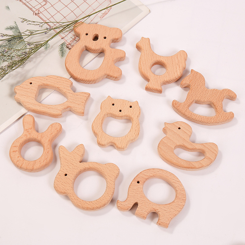 Diy部品ケヤキ丸珠子供赤ちゃん歯磨き動物数珠玩具原木純木磨き卸売り