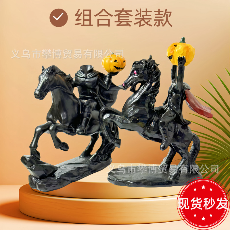 ハロウィーンの頭のない騎士の樹脂の置物の越境する新型のHeadless Horsemanの直接販売の家庭の置物