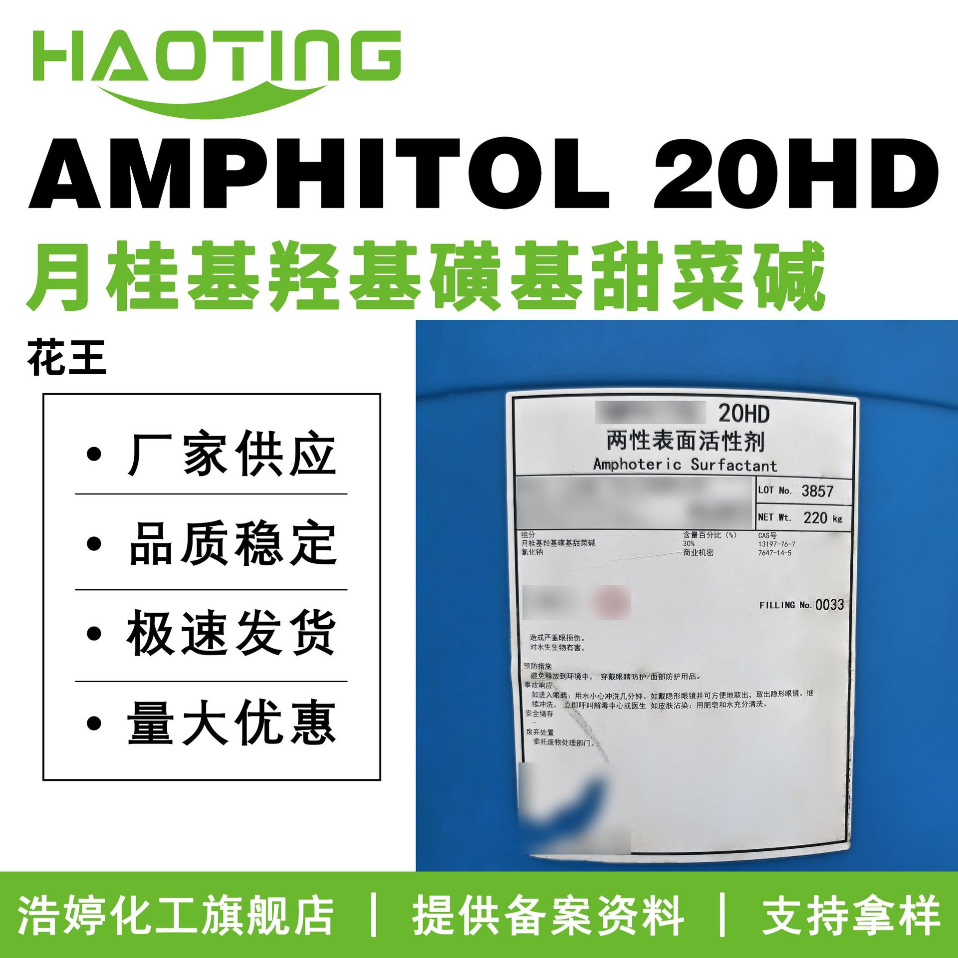 日本AMPHITOL 20HD月桂基水酸基スルホン基ベタイン洗浄保護原料1kg