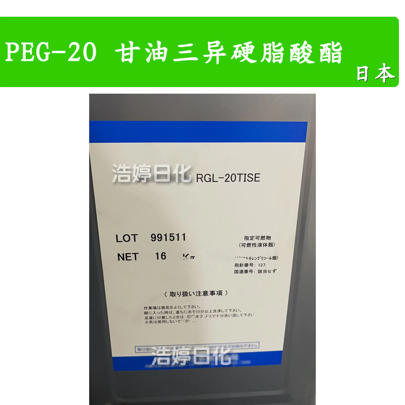 日本のRGL-20TISEのペグ-20グリセリンの三異ステアリン酸エステルの化粧は髪のスキンケアの原料の100gを保護します。