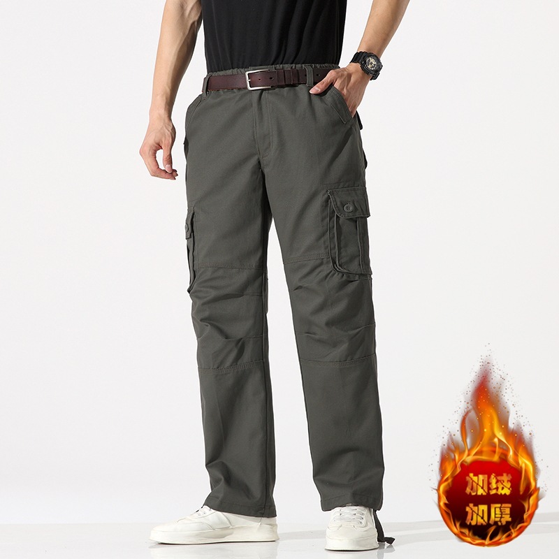 2024秋冬の新型ベルベットは保温工装カジュアルパンツの国境を越えた男性直筒工装ズボンの卸売りを厚くした