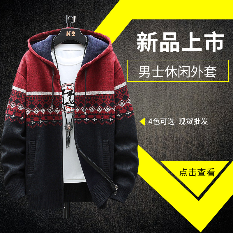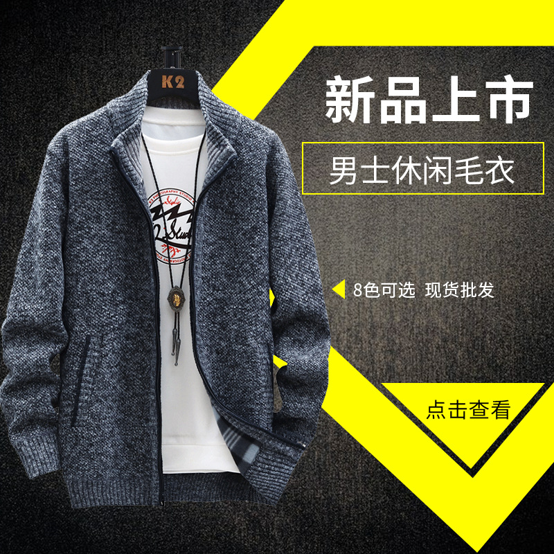 ファッションセーター秋冬男性純色ニットジャケット2021年新型ベルベット厚手ニット