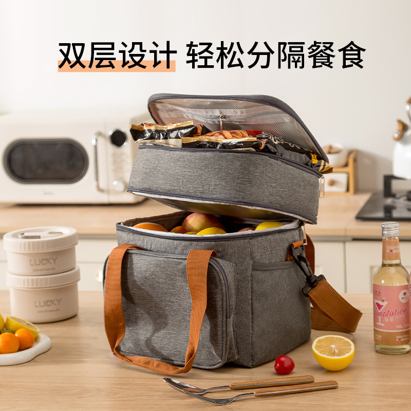 クロスボーダー二重ランチバッグ斜め掛け大容量ご飯保温袋付き屋外ピクニック防水アイスバッグ保温バッグ