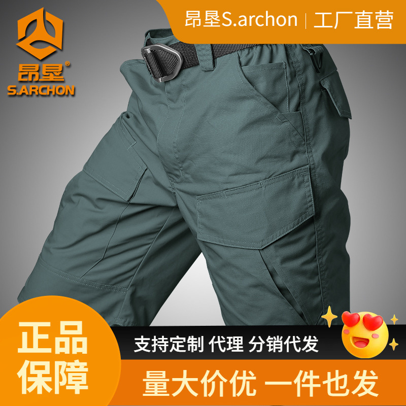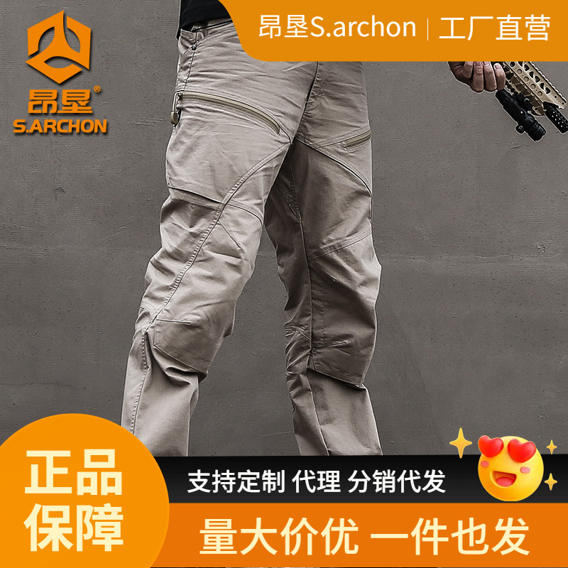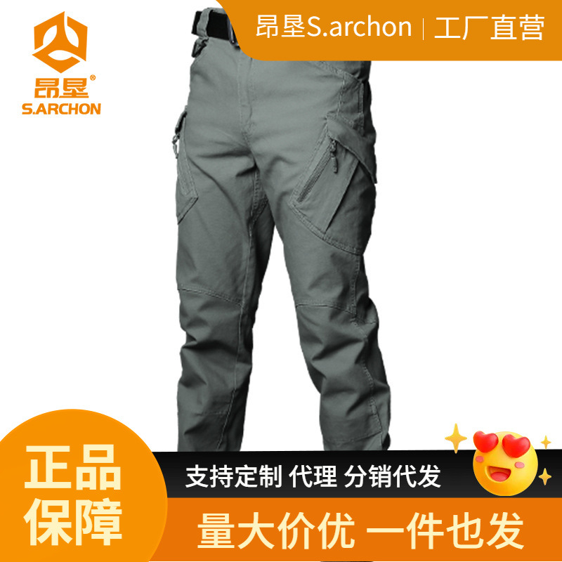 アンケン秋冬IX9タクティカルパンツメンズスリムフィットストレッチ多ポケット7ミリタリーファン訓練パンツアウトドアストレートワークパンツ