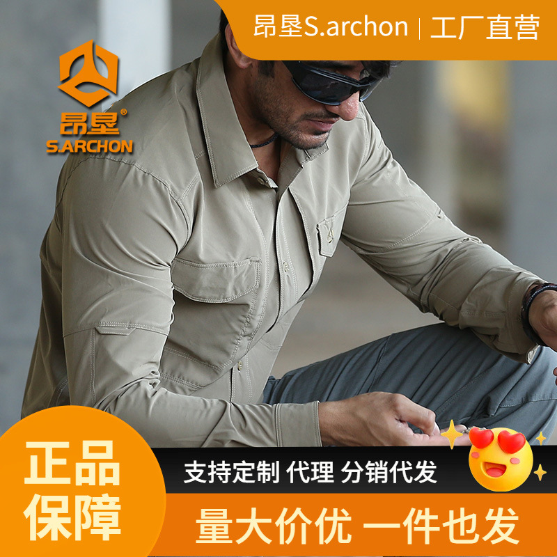 Angken 春と秋のアウトドア長袖タクティカルシャツメンズ超薄型通気性マルチポケット速乾シャツラペル登山ジャケット