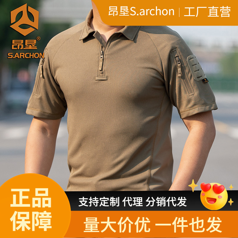 Angken 屋外射撃場速乾ラペル半袖メンズ夏軽量通気性スポーツポロシャツ軍事ファン戦術 Tシャツ