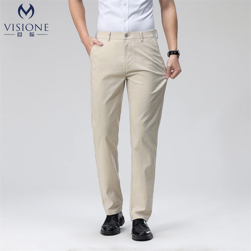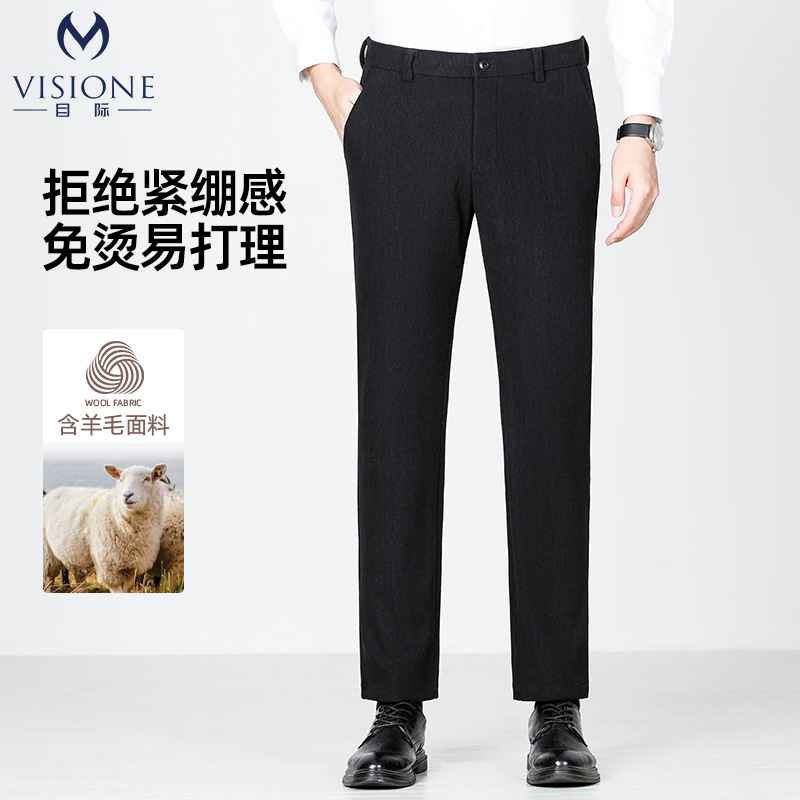 VISIONE秋冬新作ズボン男性保温ウール中青年お父さん服ストレートズボンカジュアルズボン