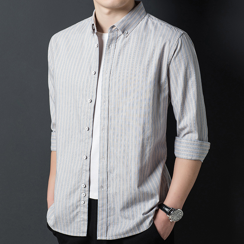 高級ストライプ長袖シャツ男純綿春夏新作抗シワビジネスカジュアル半袖シャツ男