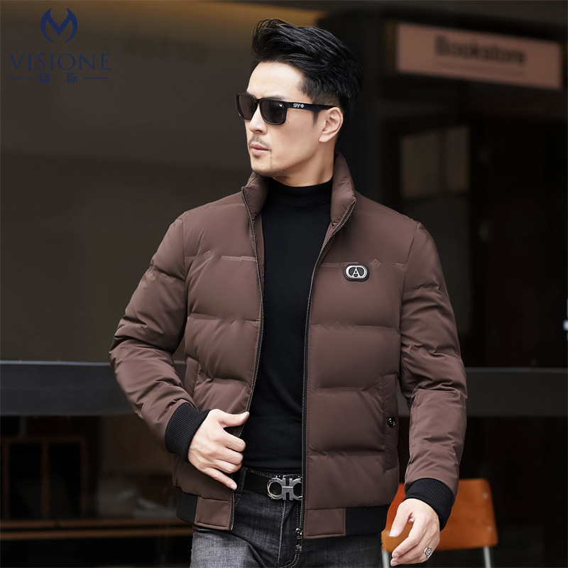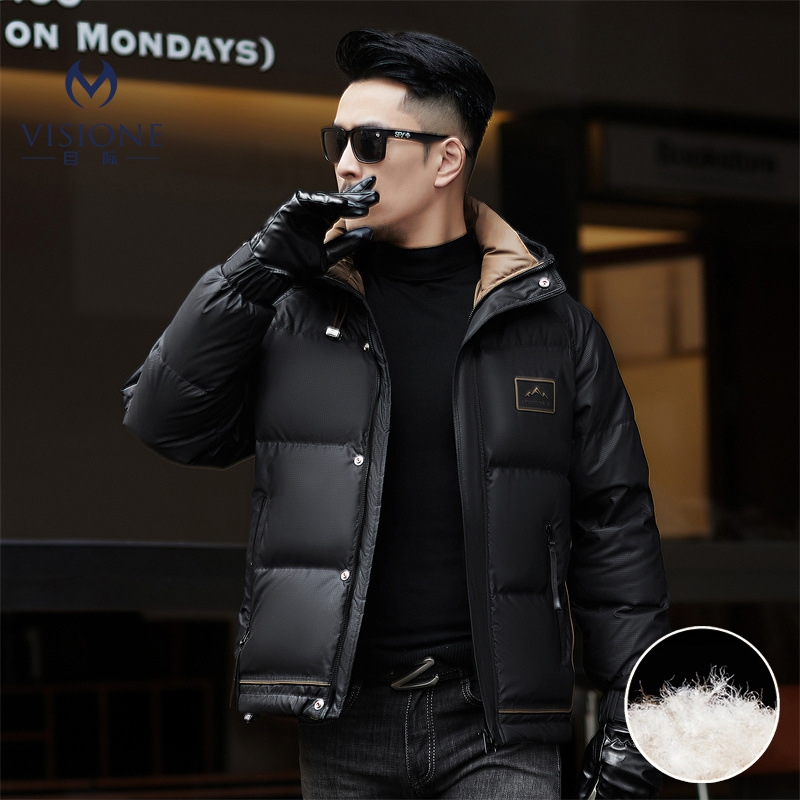 起爆ダウンジャケット男短金2024年冬の新型ファッション立襟ゆるい防寒白鴨パイル保温コート
