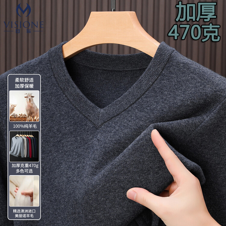 秋冬100% 美諾ウールのセーターの男性は厚い保温のセーターの純色のvネックの中で底のニットのセーターを掛けます。