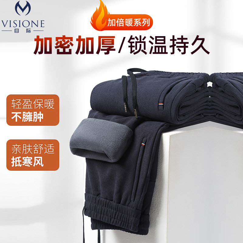 VISIONE秋冬コーデュロイ男性カジュアルパンツゆるい長ズボンベルベット厚い中青年スポーツパンツ
