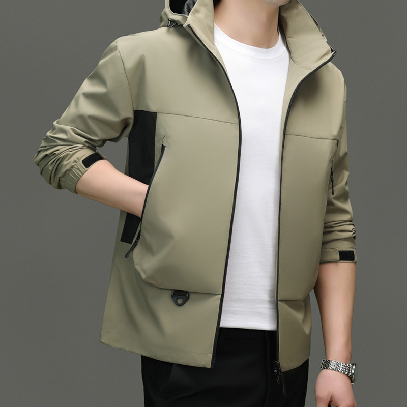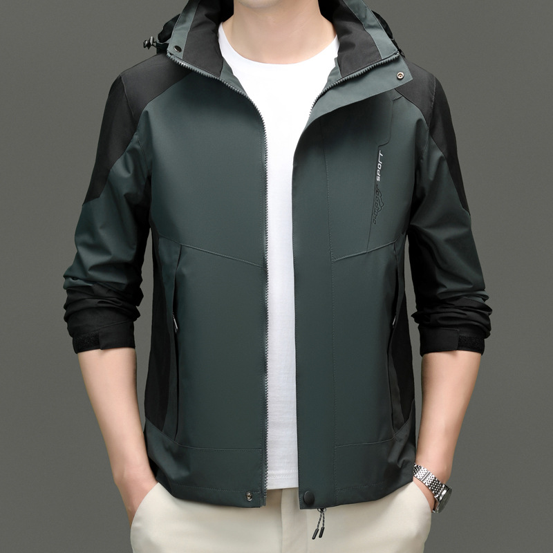 1件の代発春秋沖前線服男性の新型ジャケットと帽子コートのカジュアルなアウトドア登山高級防風服