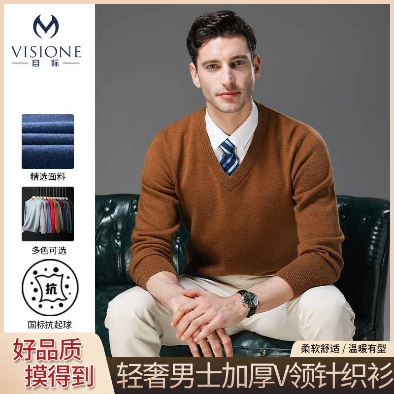 秋冬の新型カーディガン男性は保温ビジネスカジュアル男性のセーターを厚くして、純色のvネックニットで底を打ちます。