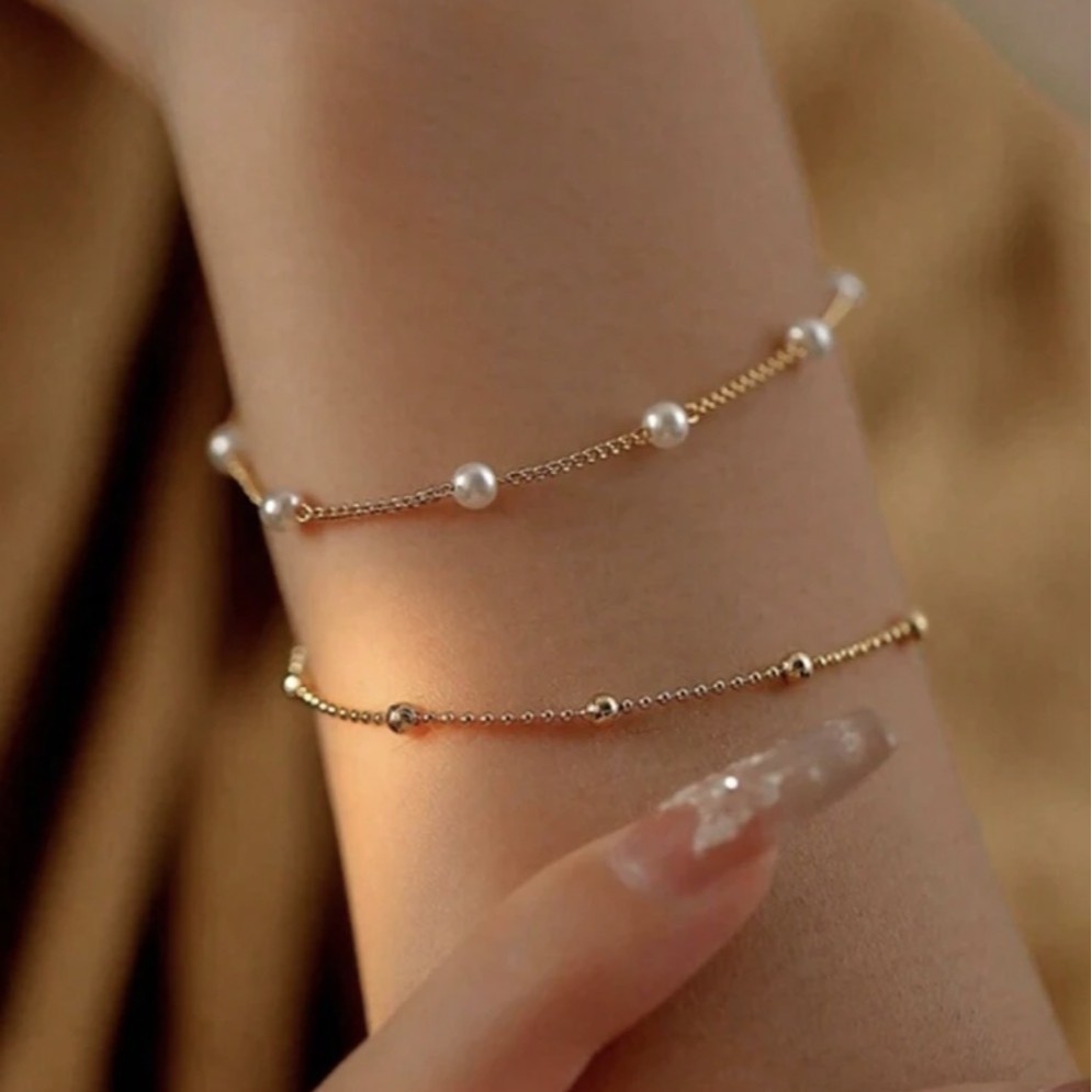 新しいファッションパールチェーンブレスレットツーピースセット女性のためのエレガントで新鮮なスタイル多用途ライト高級ブレスレット