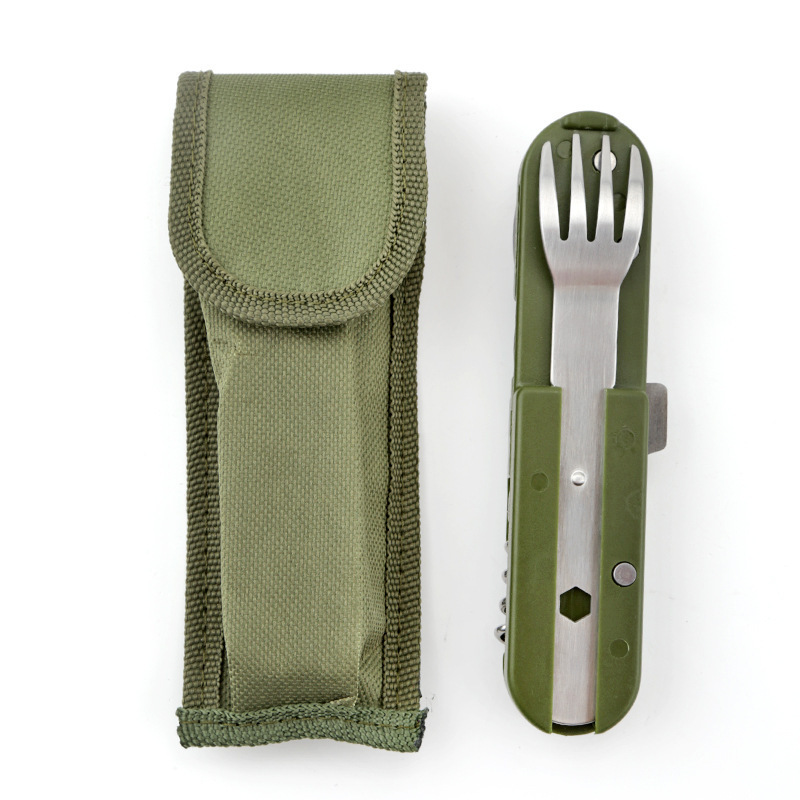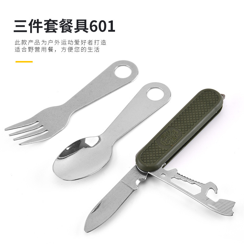 メーカー直売多機能折りたたみナイフスプーンとステンレスの三点セット屋外キャンプ多機能軍刀