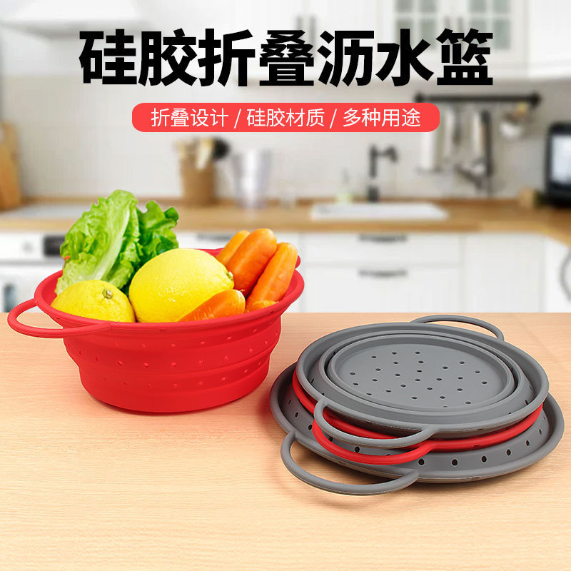 シリカゲル折りたたみ果物野菜フィルターバスケットクロスボーダー円形伸縮アウトドアキャンプ台所水切り野菜バスケット現物