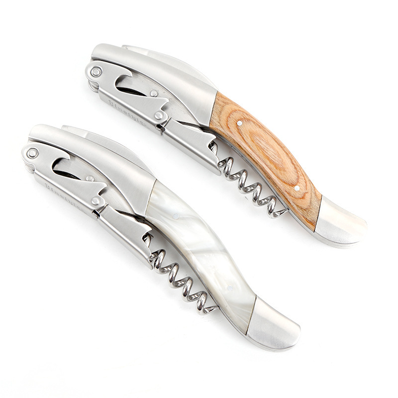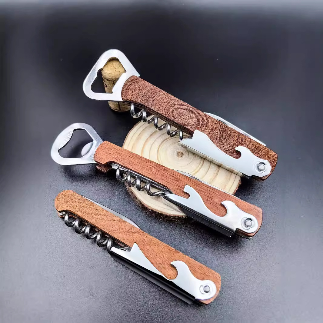 メーカーは木の柄の栓抜きを生産しています。ステンレスの栓抜きをしています。