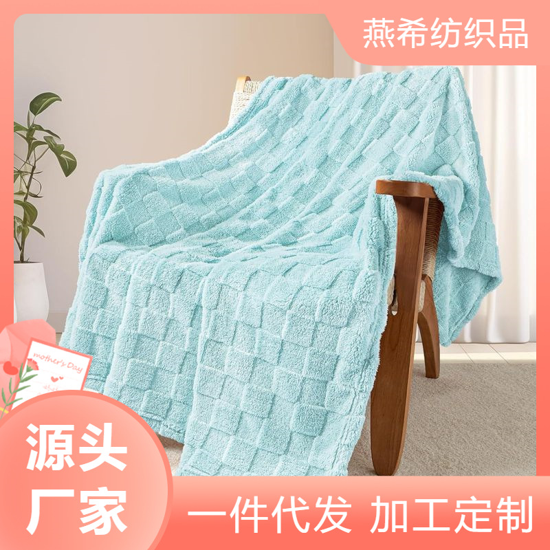 クロスボーダーグリッドコーン粒フランネル毛布、厚手で裏起毛、オフィス昼休み用毛布、肌に優しい毛布、超柔らかい