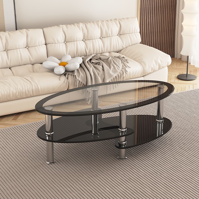 楕円形のコーヒーテーブルライト高級強化ガラスクリエイティブホーム小さなアパートシンプルなティーテーブルリビングルームモダンなテーブル