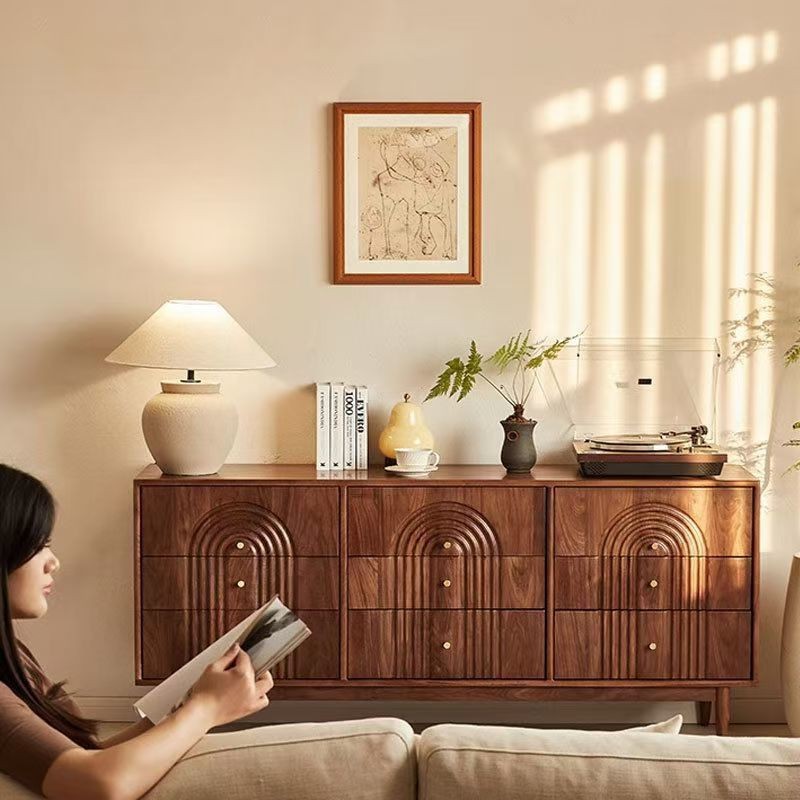 北欧全実木黒胡桃木九斗戸棚復古客間ロッカー現代シンプル寝室ベッド尾収納キャビネット