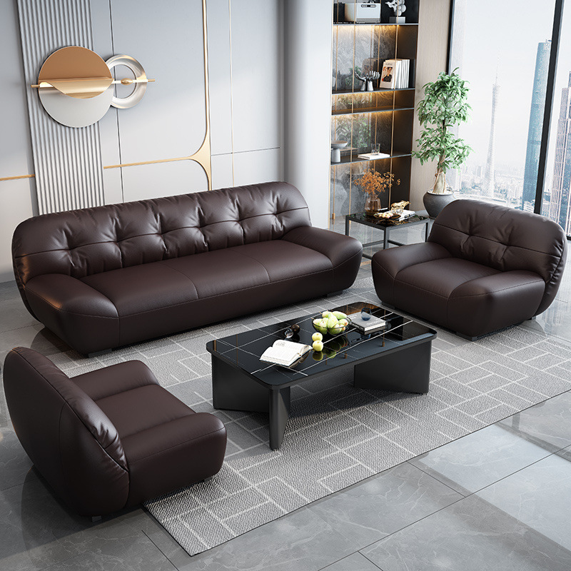 新型オフィスソファー現代シンプルな接客三人ビジネス社長ソファー茶卓の組み合わせ