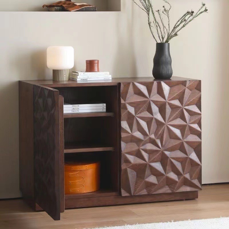 北欧の木のサイドキャビネットは現代的にシンプルで、玄関の寝室のリビングルームに収納されています。