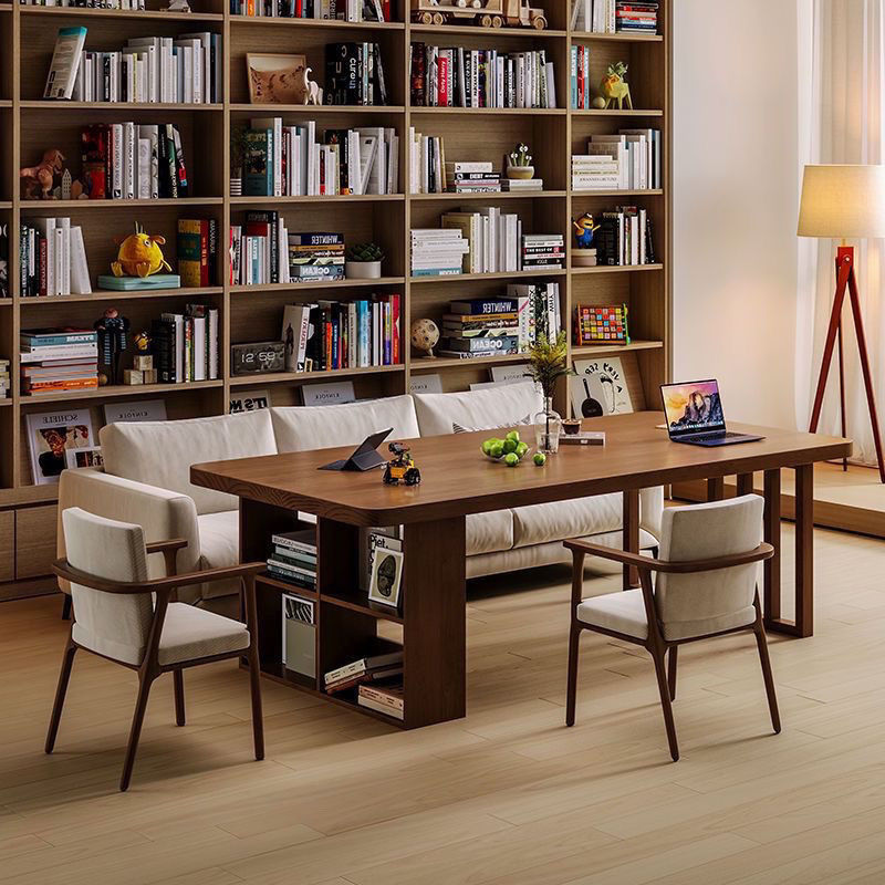 レトロでシンプルな家庭用書斎は壁に寄りかかって一体化されたL型本棚デスクオフィスの簡易キャビネットコーナーデスクです。