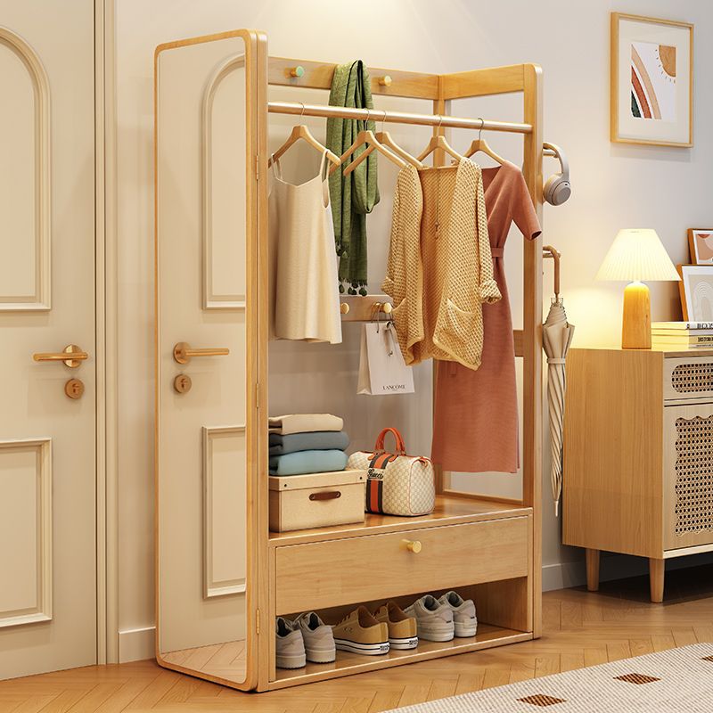 ハンガー掛け簡易床置き式寝室家庭用ハンガーハンガーネット赤収納棚実木掛け収納棚