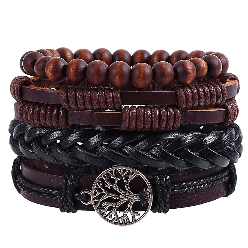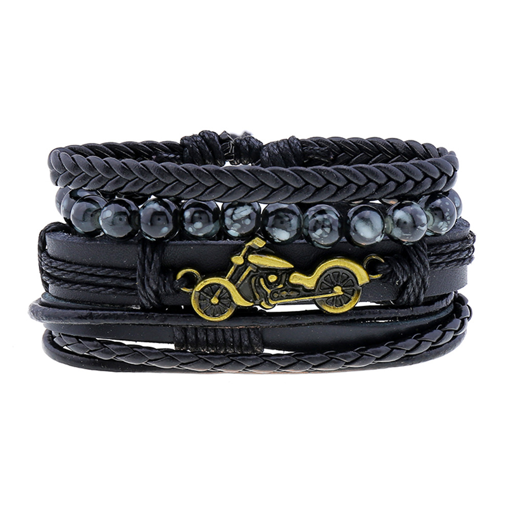 メーカー直販欧米風シンプルレトロ編み牛革ブレスレットオートバイ多層セット革ブレスレット男性
