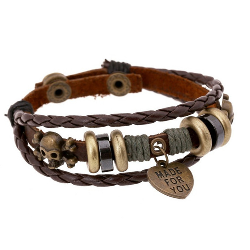 欧米の国境を越えて人気のあるスカルのビーズのレトロな牛革のブレスレットの男性はdiyセットの皮革のブレスレットを編みます。