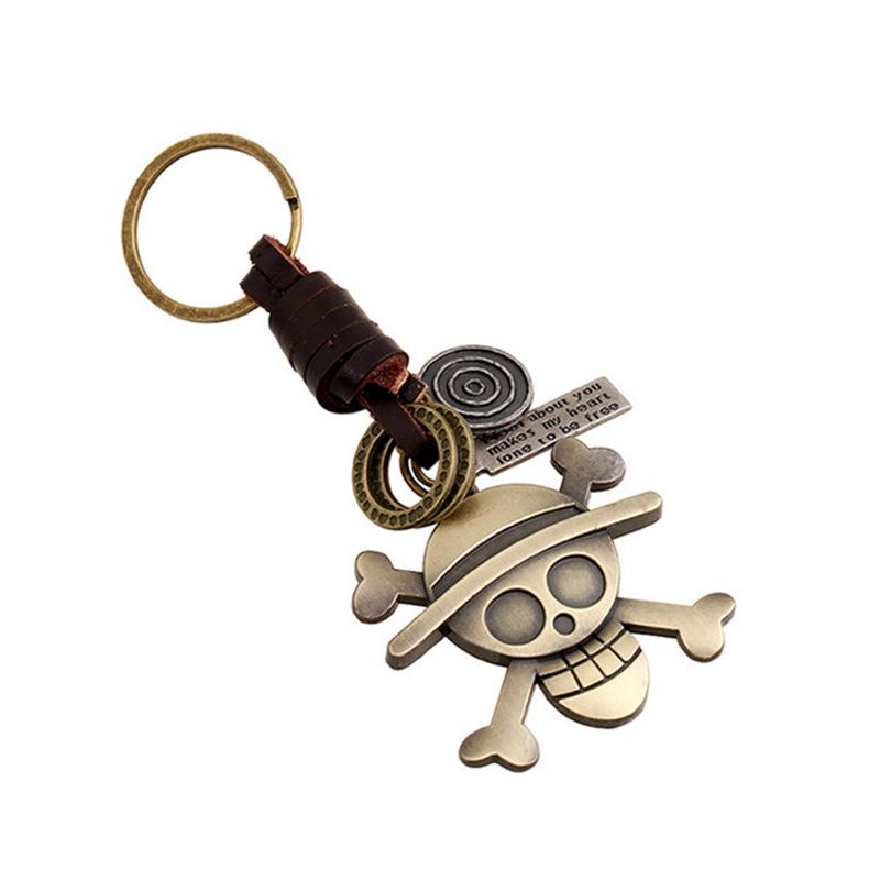 メーカー直販レトロ編み合金スカル本革キーホルダーパンク牛革キーホルダー