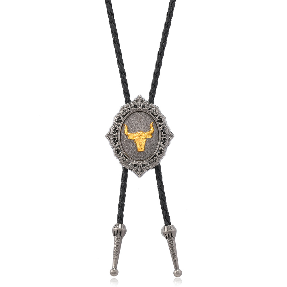 欧米レトロメダル金牛馬ペンダント男性西部カウボーイ風ロングネックレス