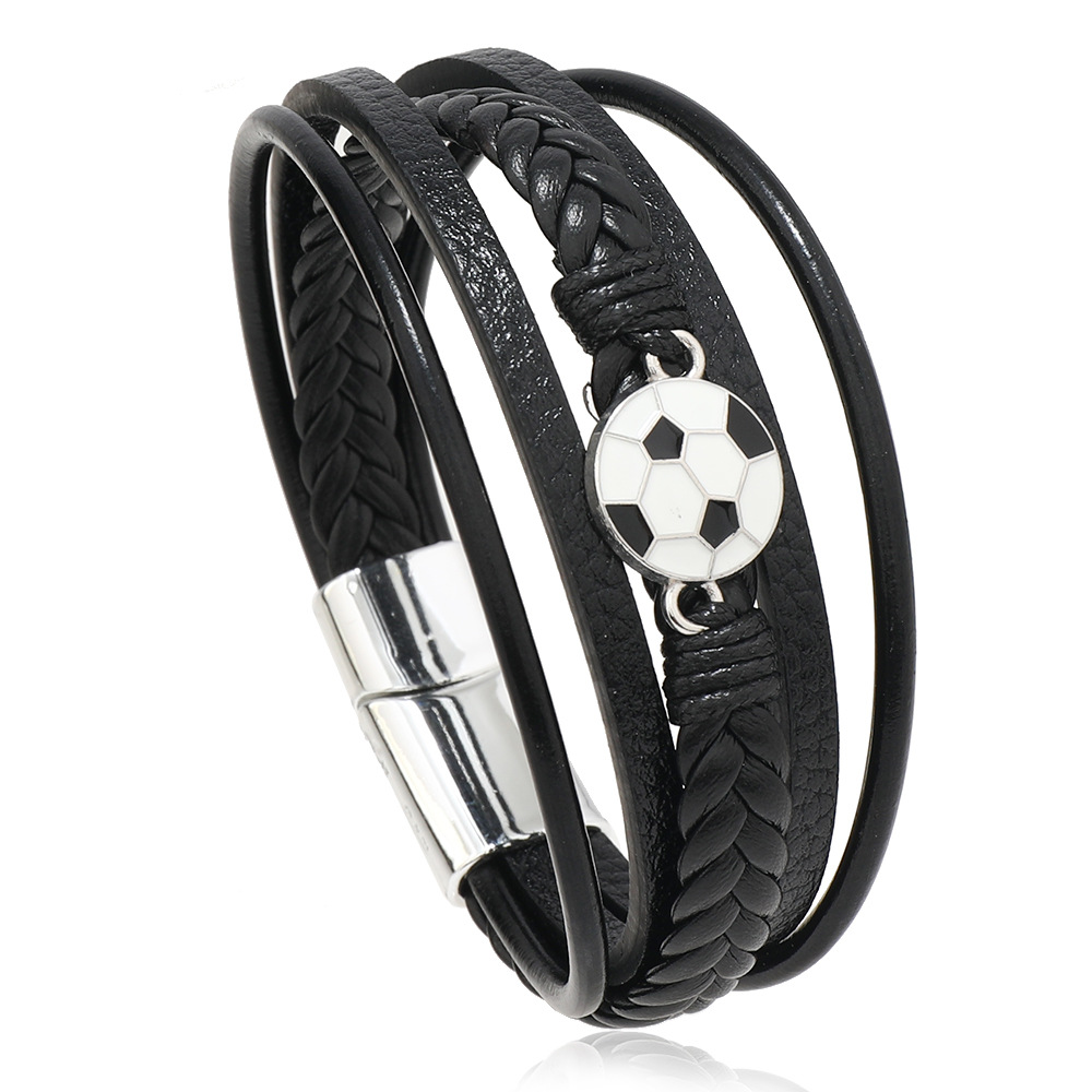 欧米の新型の個性的なサッカーチームのファンの多層革のブレスレットの男性の磁気ボタンの記念の贈り物のアクセサリーのブレスレット