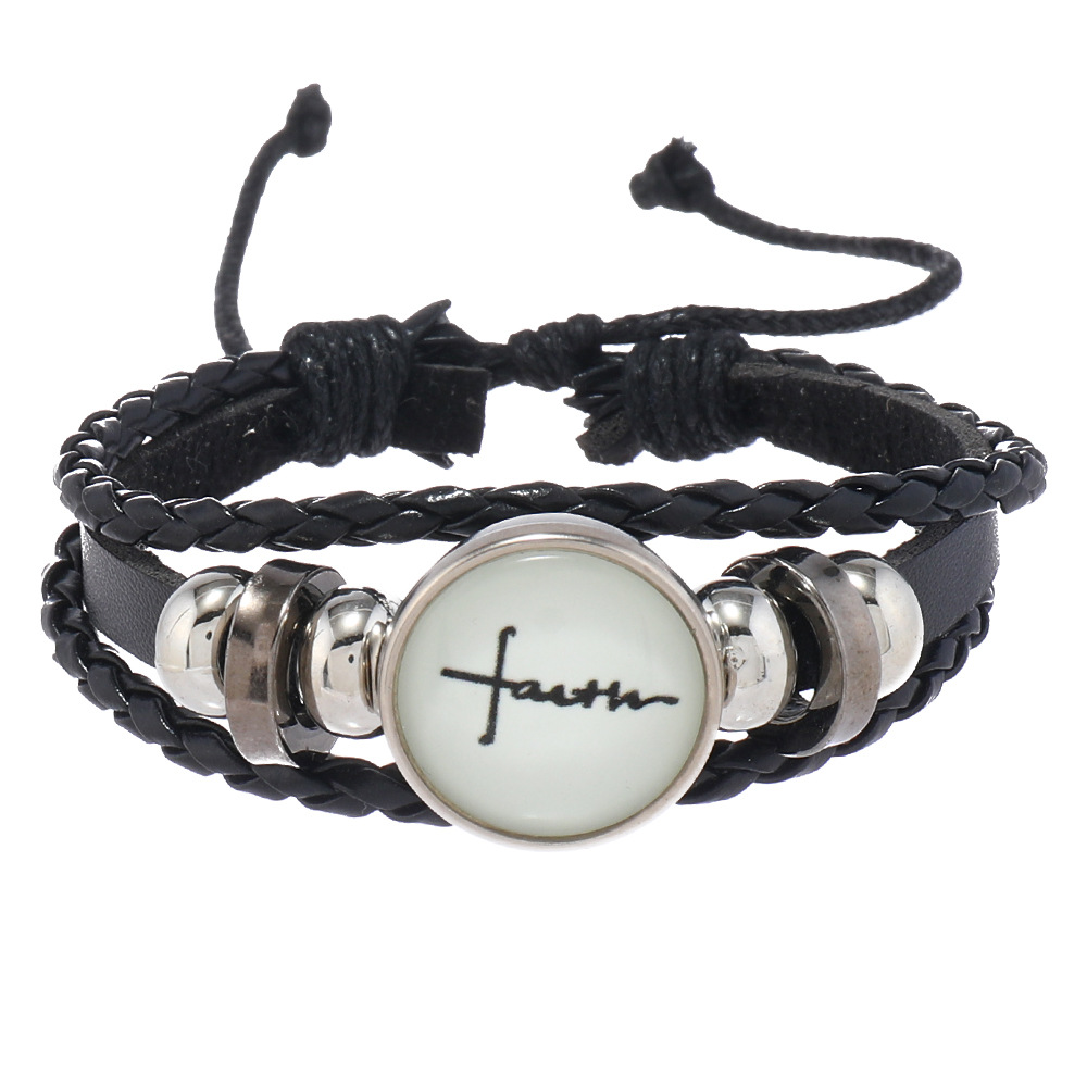 欧米の流行のアクセサリの個性の夜光の署名のfaithの皮革のブレスレットの学生の記念の贈り物の手縄の手環の男