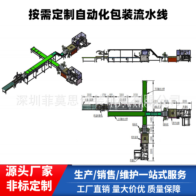 非標準包装ライン自動包装ライン開梱箱は、重量フィルム機を持ってオーダーを受ける