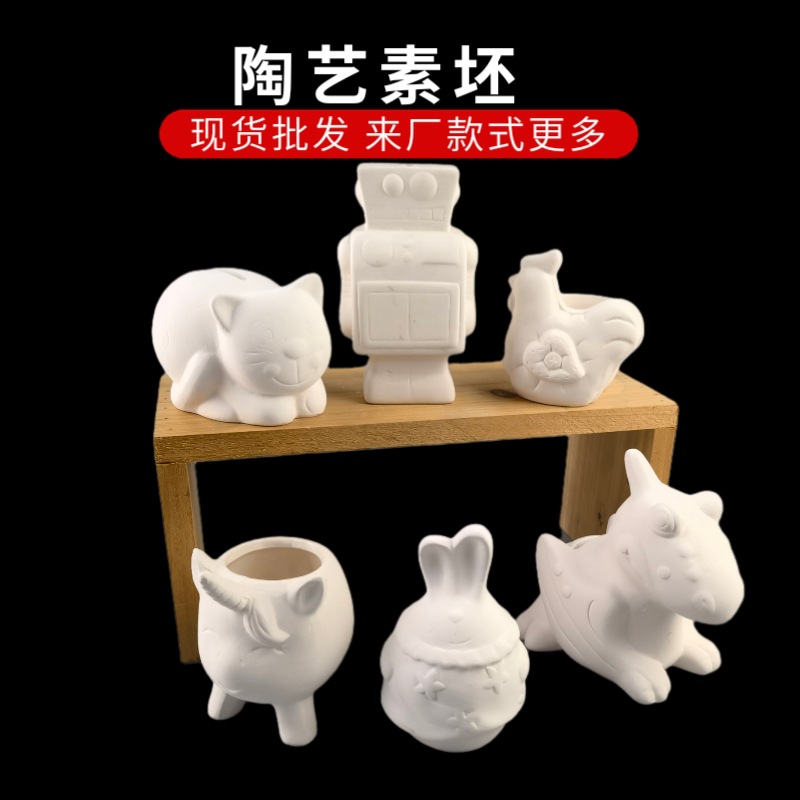 素地陶磁器銭缶DIY児童彩貯金箱絵白地恐竜貯金箱白雲土無焼公仔