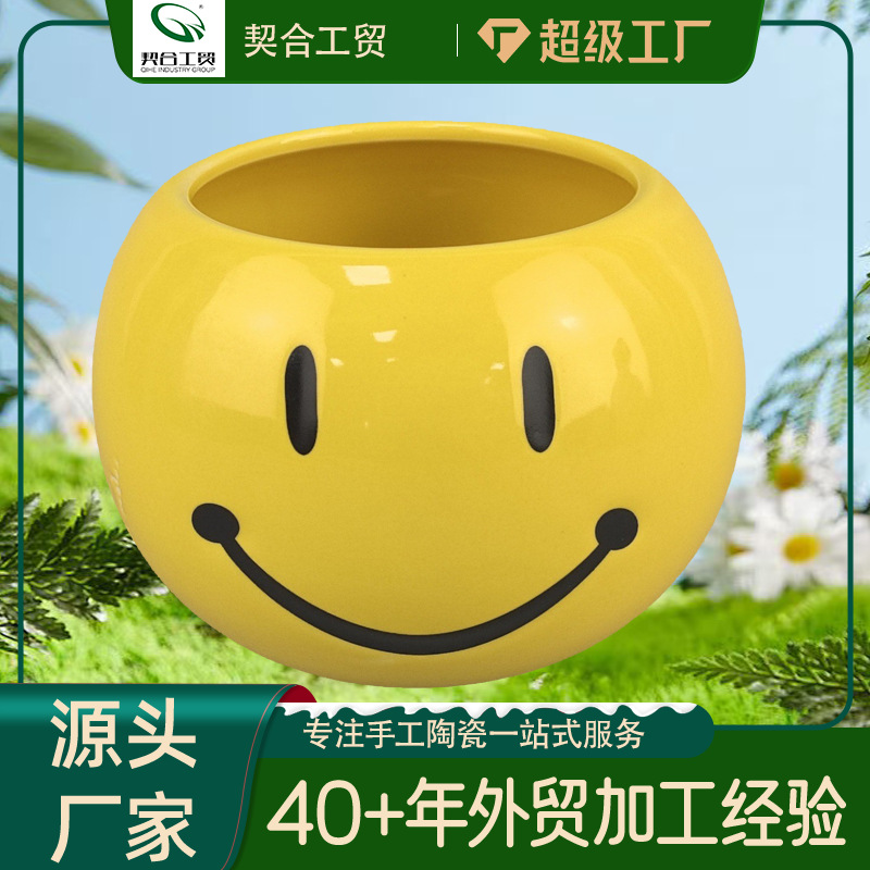 越境陶磁器のかわいい形の表情は笑顔の蘭の鉢植えの緑の羅の植木鉢の仙人のボールの多肉植物の植木鉢を包みます。