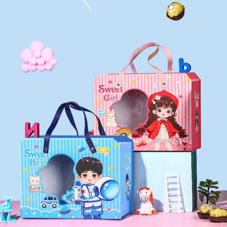 満1歳の宴会の手提げギフトボックス新生児百日お返しギフトボックス漫画空箱満月誕生日宴国潮ギフトバッグ