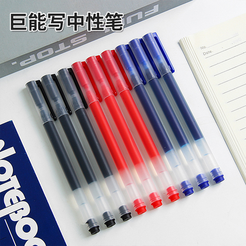 巨能写中性ペン12本セット0.5mm弾丸型サインペン黒赤青カーボンインクペンオフィス試験用ペン芯