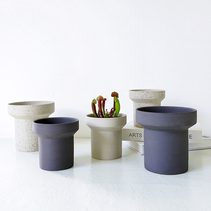 北欧シンプルな黒い木目のセメントの植木鉢の創意的な個性の大きいサイズの着地の大きい葉の傘の植物の客間の植木鉢