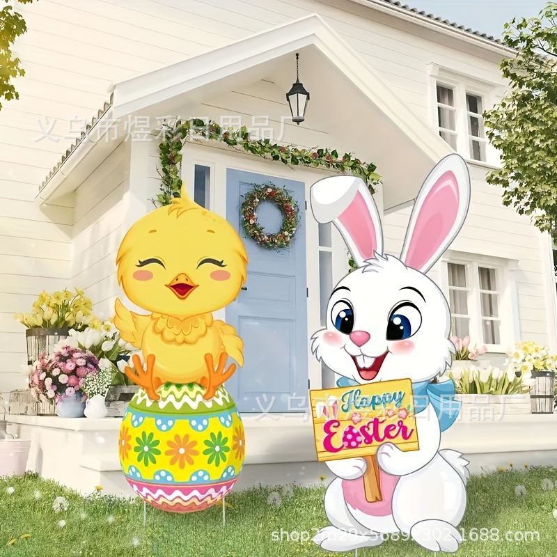 越境プラスチックイースター地挿しの中空板防水ウサギの卵の芝生の装飾は庭の標識を挿します。