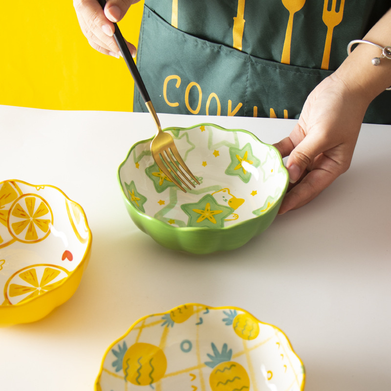 日本式の手描きのかわいいさくらんぼの小さい碗の家庭の創意の個性の陶磁器の碗の果物のサラダの碗のご飯の碗の蒸し碗の皿