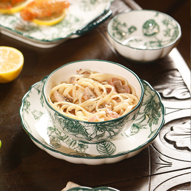 フレンチ中古風ins墨緑バラ皇后古典陶磁器食器ご飯碗に料理皿をつけてスープ碗にします。