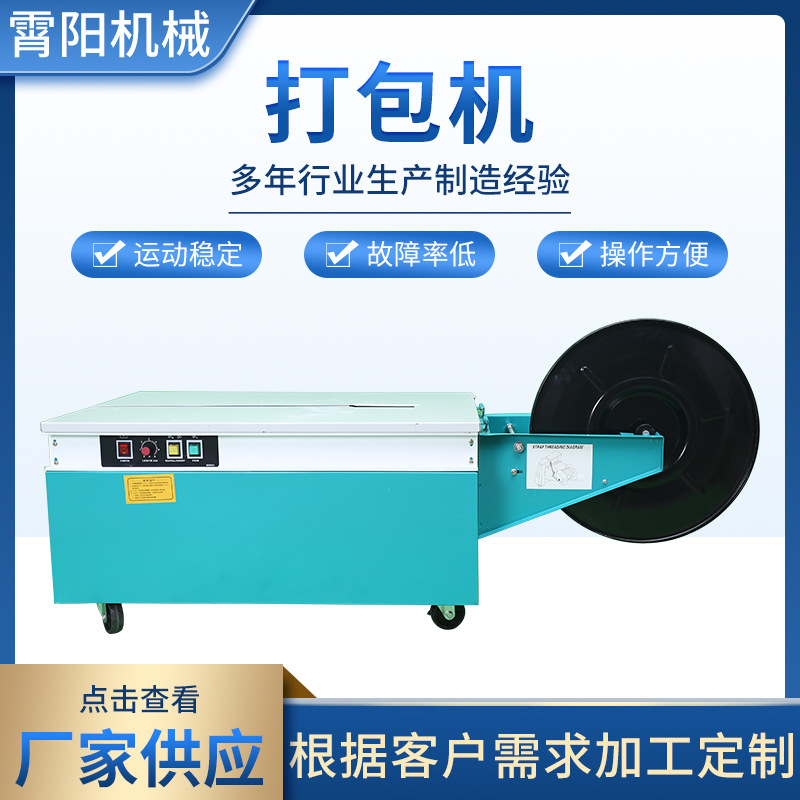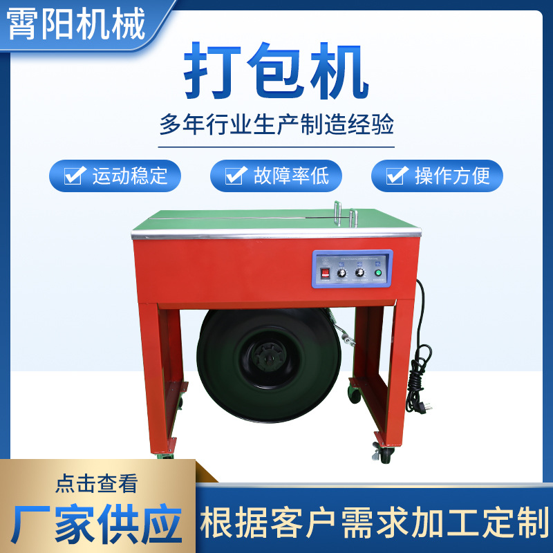 高台双電機半自動包装機メーカーは全熱溶融ボタンレスppベルト箱梱包機を供給している