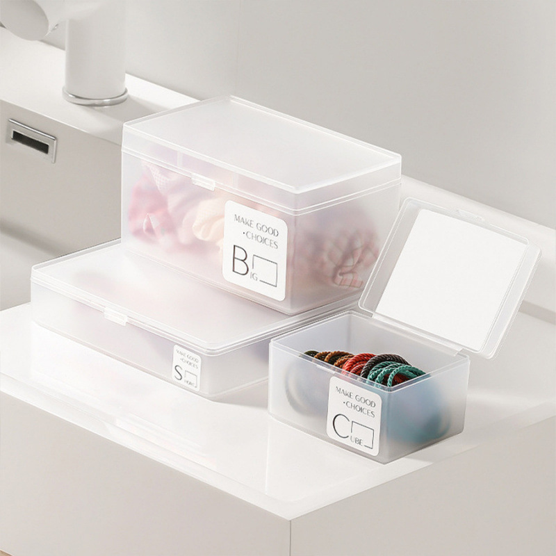 加工デスクトップ収納ボックスプラスチックフロスト透明トランペット蓋付きシール分類事務文房具雑貨収納ボックス