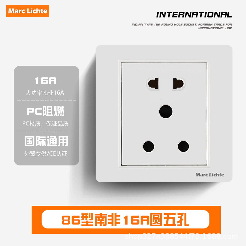 86型16a 3穴大型南アフリカ規格壁ハイパワーラウンド5穴インド2ピン3丸ソケットの越境輸出